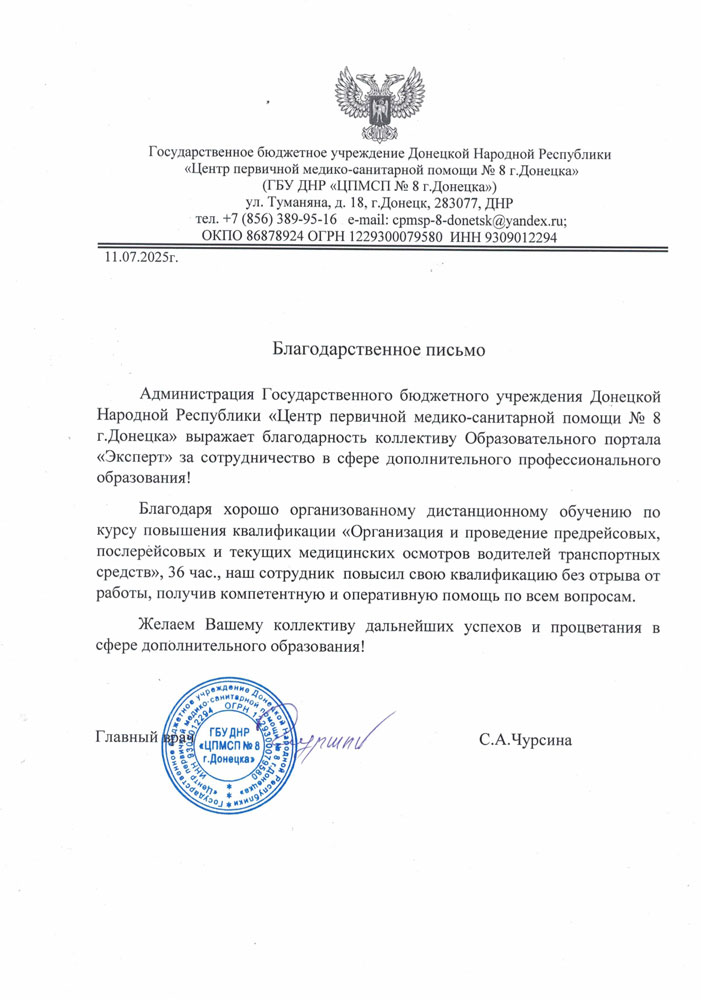 После окончания курса обучающийся получает диплом о профессиональной переподготовке установленного государством образца с бессрочным сроком действия.